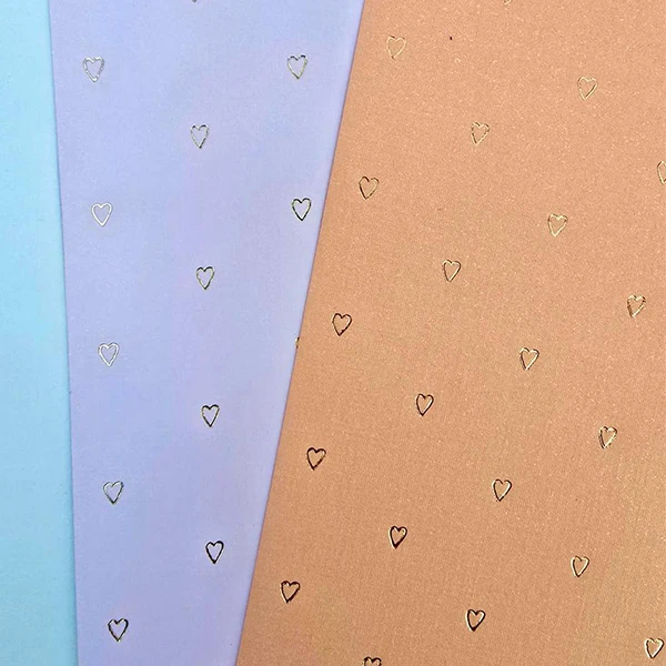 3 Hojas Rosa Coral con Stamping Corazón 180grs